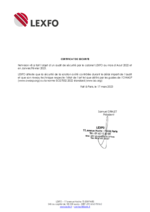 - Certification des tests de cybersécurité délivrée par une société tierce.