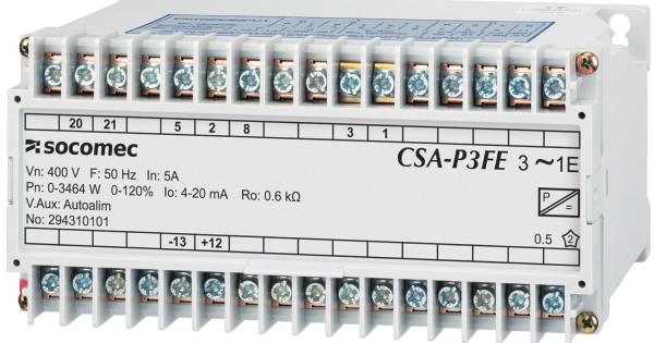 | Description | Transducteur CSA-P3FE entrée : 400V, 5A sortie : 4-20 mA, 0-10 VDC, 230 VAC alimentation auxiliaire Transducteur convertit un paramètre électrique en un signal DC |