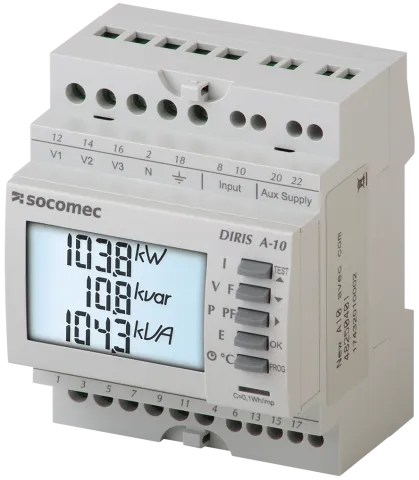 | Description | DIRIS A-10 without RS485 Modbus communication It allows all electrical parameters to be displayed and utilised for communication and/or output functions |