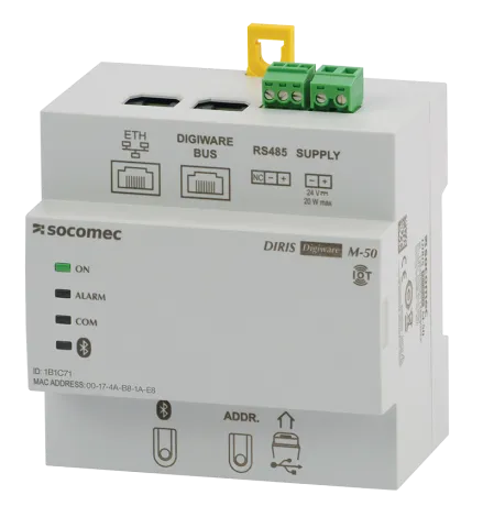 | Description | Communication gateway interface for DIRIS Digiware system DIRIS Digiware M-50 with Ethernet gateway and Modbus communication protocols |