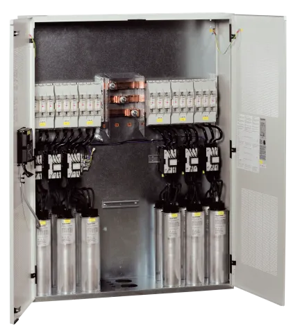 | Description | Système de compensation automatique de l'énergie réactive COSYS PFC 40 avec correction du facteur de puissance 1 x 15 + 1 x 30 + 3 x 60 + 1 x 120 kvar avec 23 pas Ces COSYS sont destinés à compenser l'énergie réactive variable. |